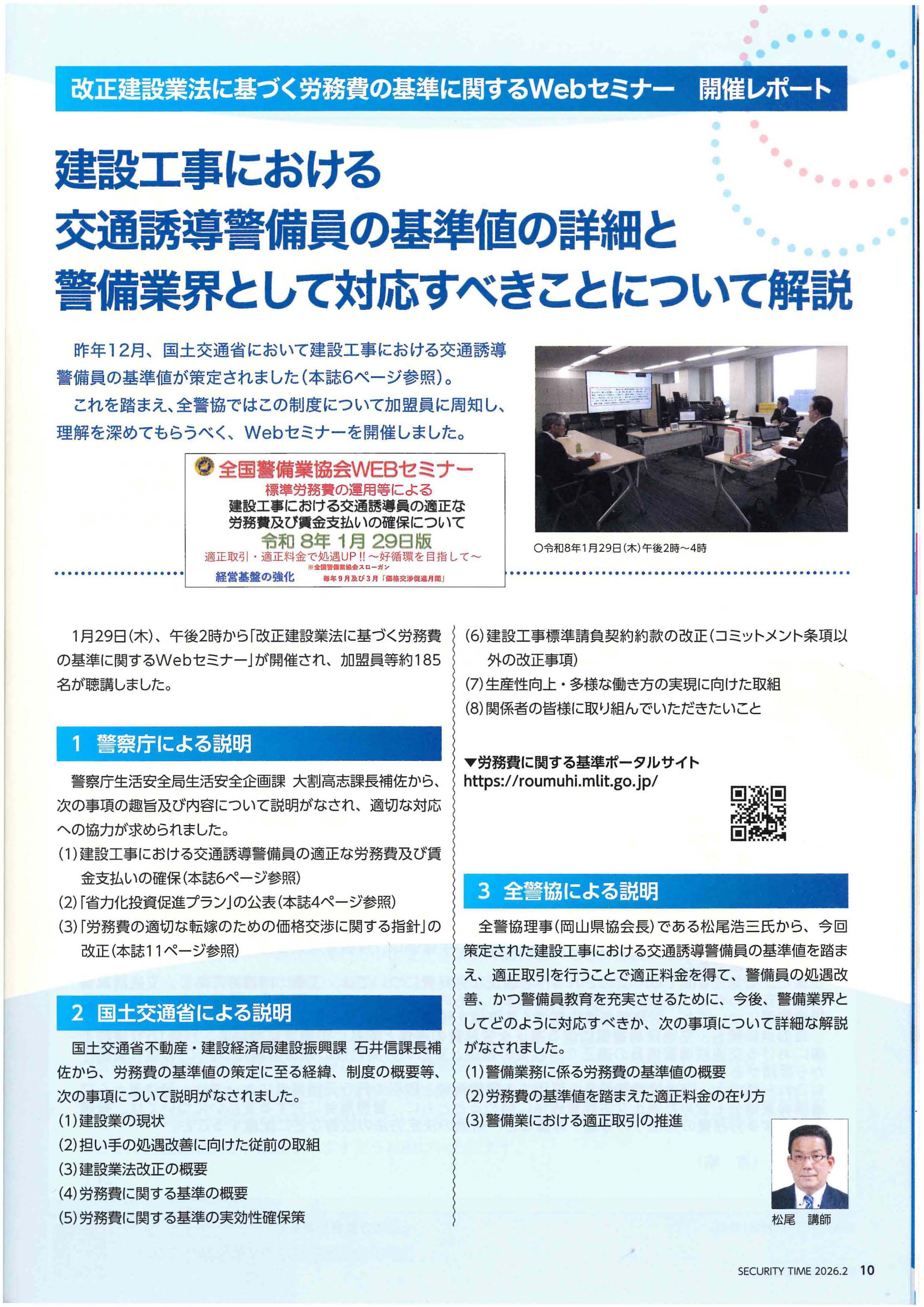 これを踏まえ、全警協ではこの制度について加盟員に周知し、理解を深めてもらうべく、Webセミナーを開催しました。