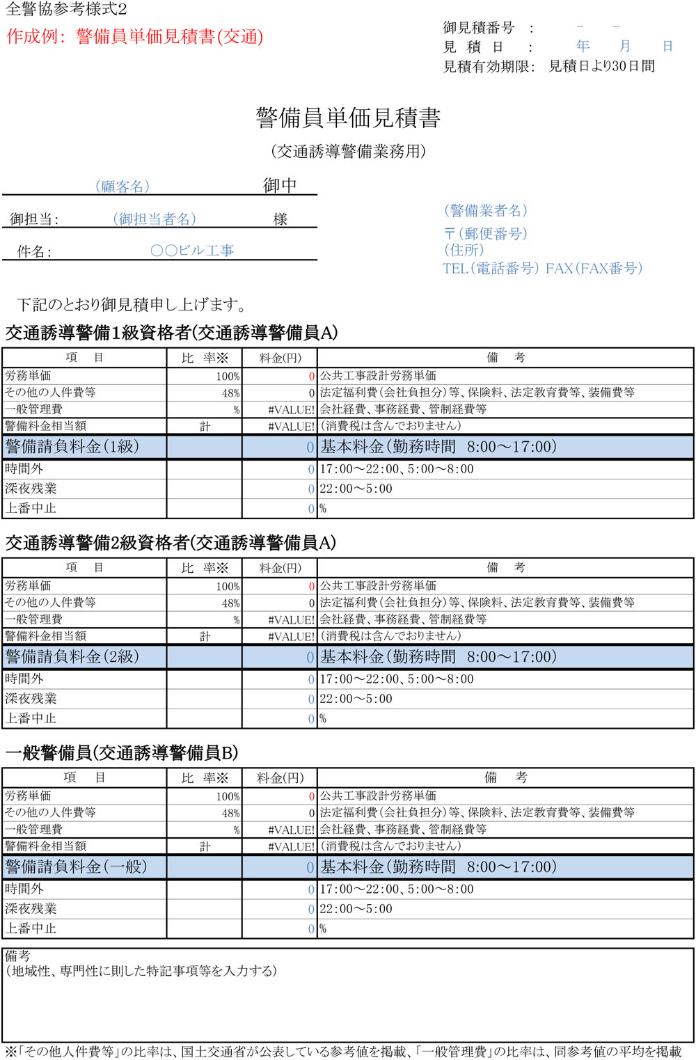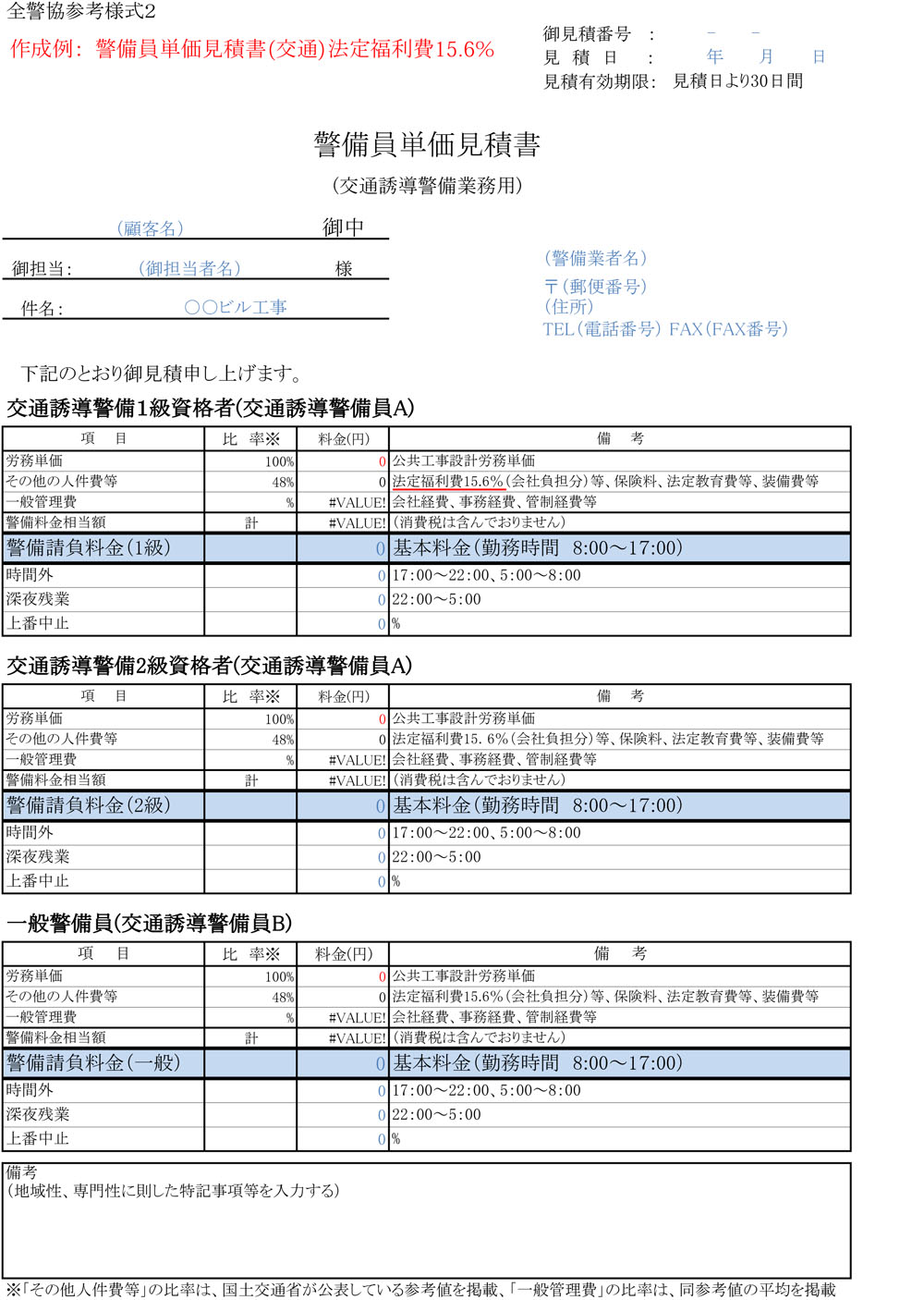 - 参考資料 近畿警備 警備見積書例